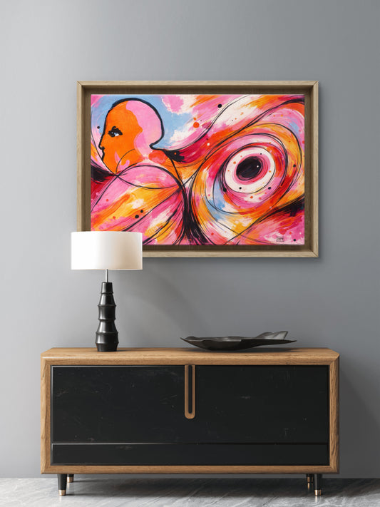 Abstrakt blomsterkunst – Ekspressivt rosa og oransje blomsterbilde