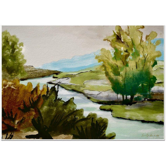 Abstrakt natur med en elv – Et fengslende kunstverk fra HareideART