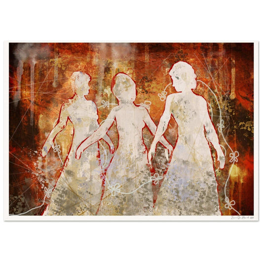 Elegant Intrigue: Three White Ladies in a Tapestry of Color