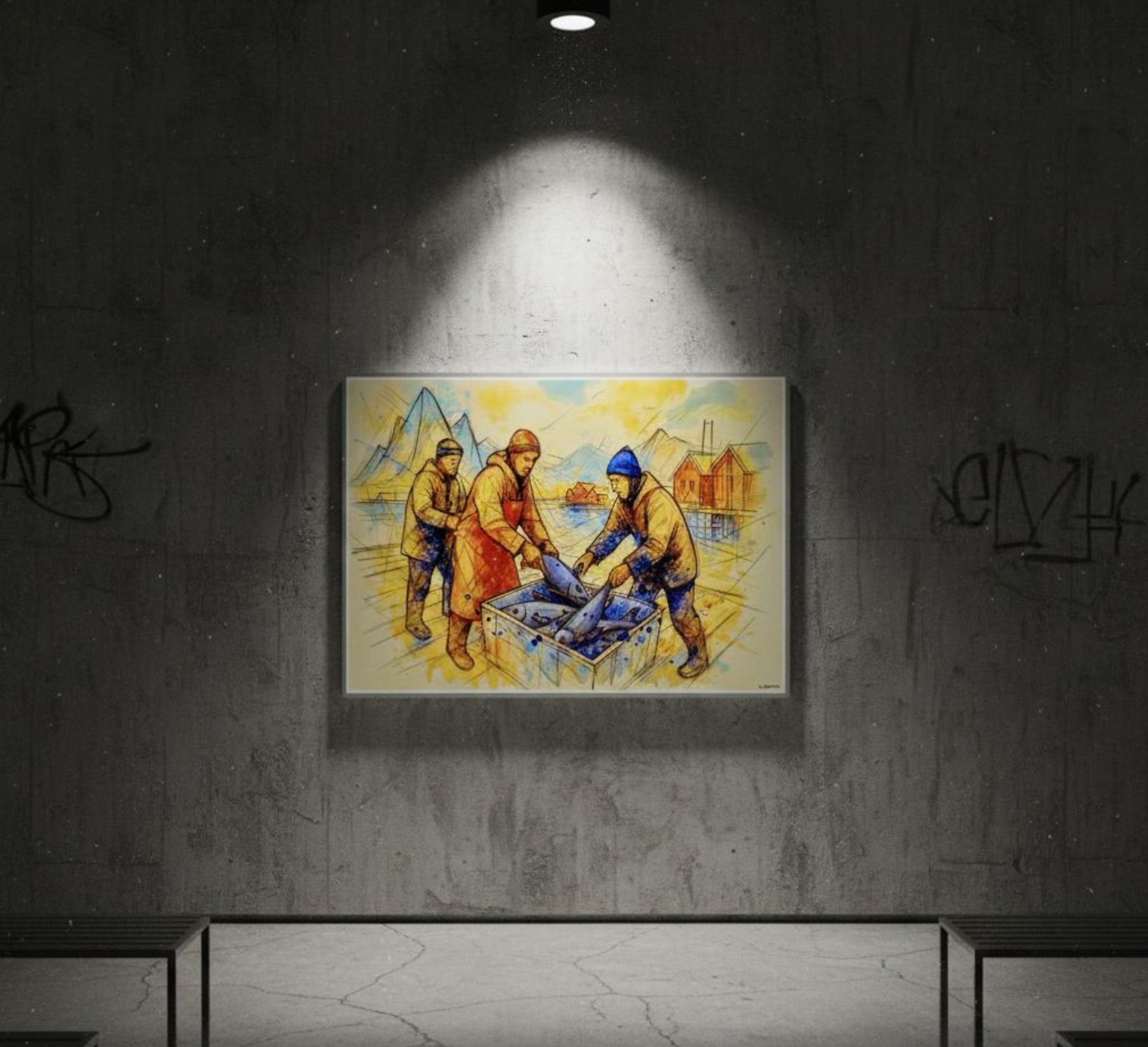 Bring hjem den nordnorske kystkulturen – et tidløst motiv fylt av arbeidsglede, natur og fellesskap.
